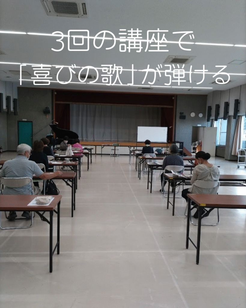 ”3回でベートーベンの喜びの歌が、両手で弾けます”という公民館講座を修了されたシニアピアノの生徒さんが、体験レッスンにみえて、入会されました。ずっとやりたかったそうですが、1歩前に出ることができずに、日を費やされていたそうです。それが講座... -
